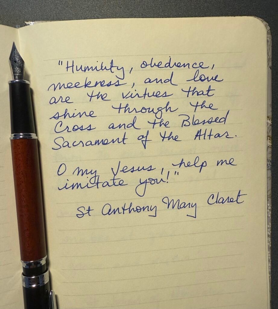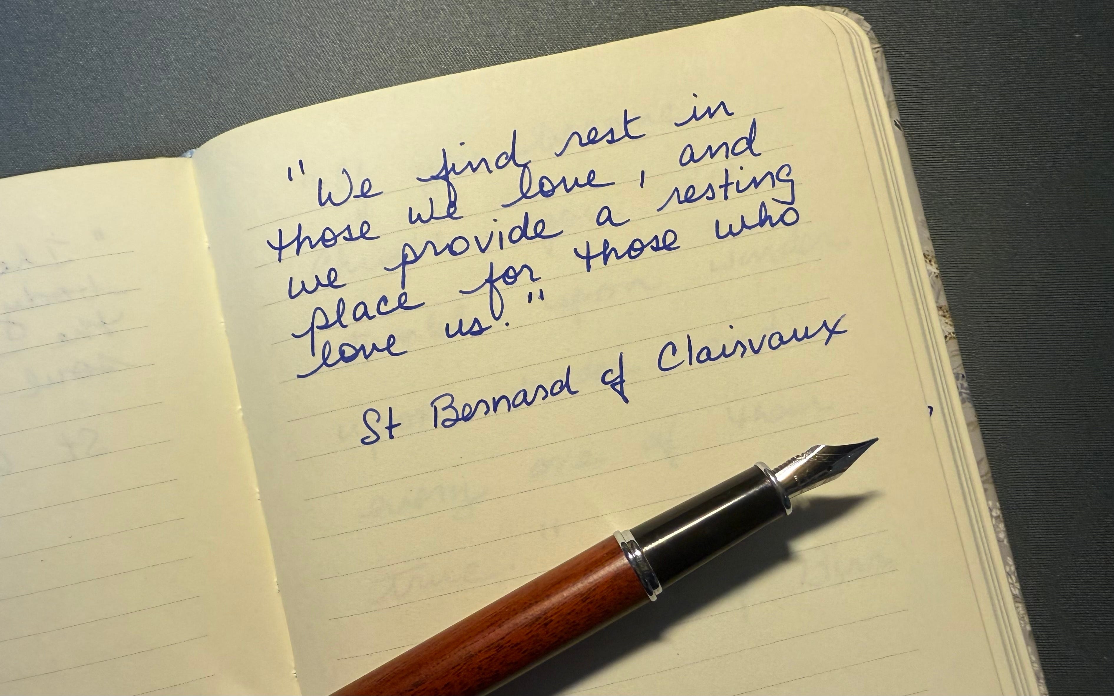 So what can you do when, as a writer, you want to maintain the discipline of writing even when you aren’t producing it? I turn to the quote journal where I curate writing instead of producing it. I record inspiration, wisdom, recommendations, consolations, all from saints or scripture or other spiritual writings. It feeds my soul and keeps the ink flowing until one day, my creative voice re-emerges
